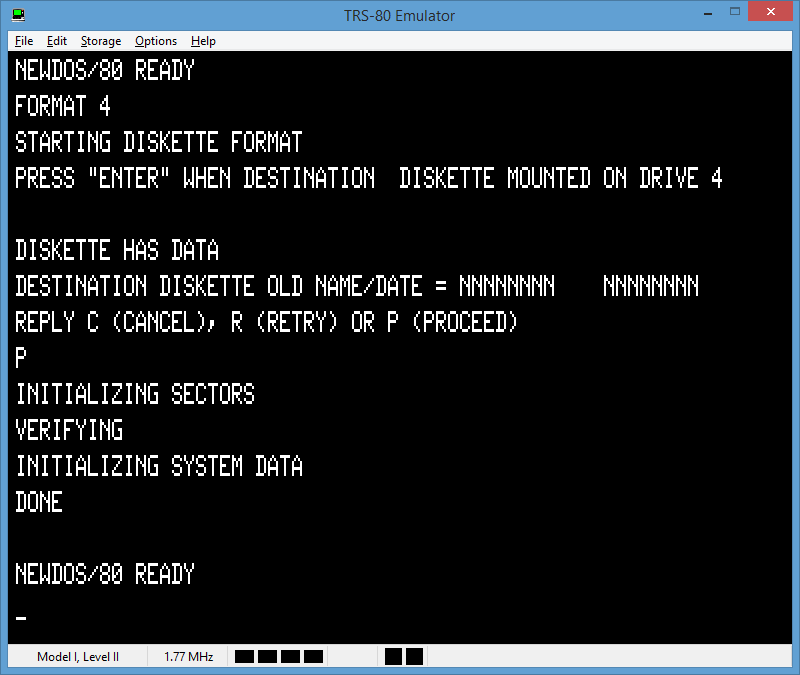 Maintenant que la partition 4 est en forme, nous allons y placer le système NEWDOS80 V2.5